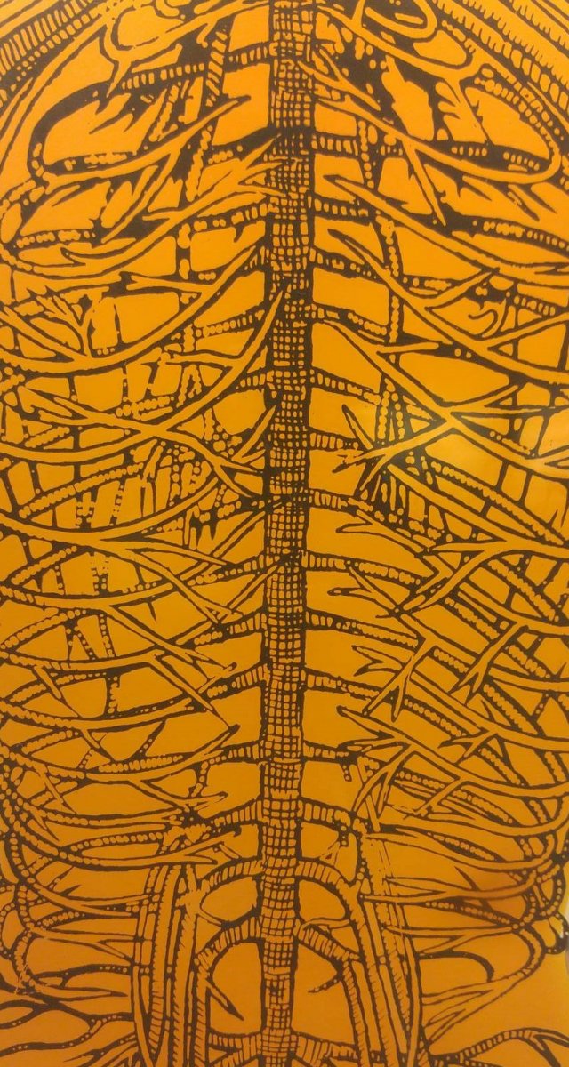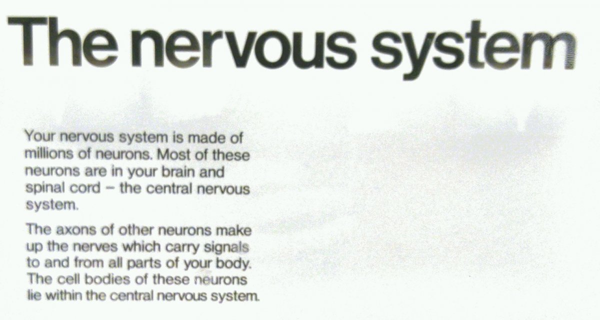 Above an image shows where the nerves are most on the body - the more nerves the larger the image. This shows that they are most predominantly placed in areas which we use incredibly regularly, mostly in our face and fingers. The image to the right, however, shows a real central nervous system made up of the brain and the spinal chord. all the nerves in our bodies end up here. This idea reminds of a 'collecting duct' where the many electrical impulses occur this is a huge element to how we survive as it controls all our actions, reactions, reflexes and even our balance. It is this idea that I want to create and visualise in my work looking at this organ and showing it as a column of electricity. I particularly like the shape and find that it is very similar of that of an electric circuit board the nerves peeling off like wires from the main frame. The very bottom is particularly pleasing as it continues to follow the pattern while slowly widening and phasing out - it is a shape that I want to work with and include in my project. The only frustrating thing when using this as a referance is the fact the 'myelin sheeth' - a protective fatty layer - still surrounds the nerves like a skin which means that they are partially blocked and can not be seen en their entiartiy, this is not something that I wish to include in my work.