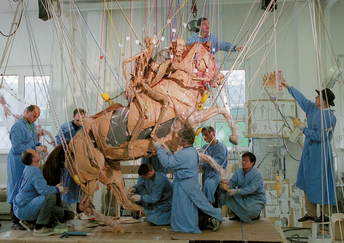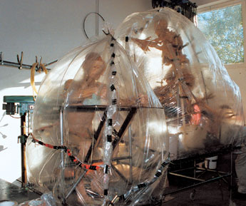 The process of plastination takes up to a year for a full body. It has to be positioned before a vacuum is created around it which holds it inlace. For Dr Hagens the position of the body is key as it means that the workings of the muscles are on display.