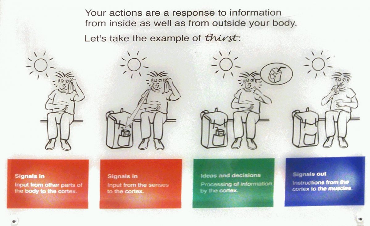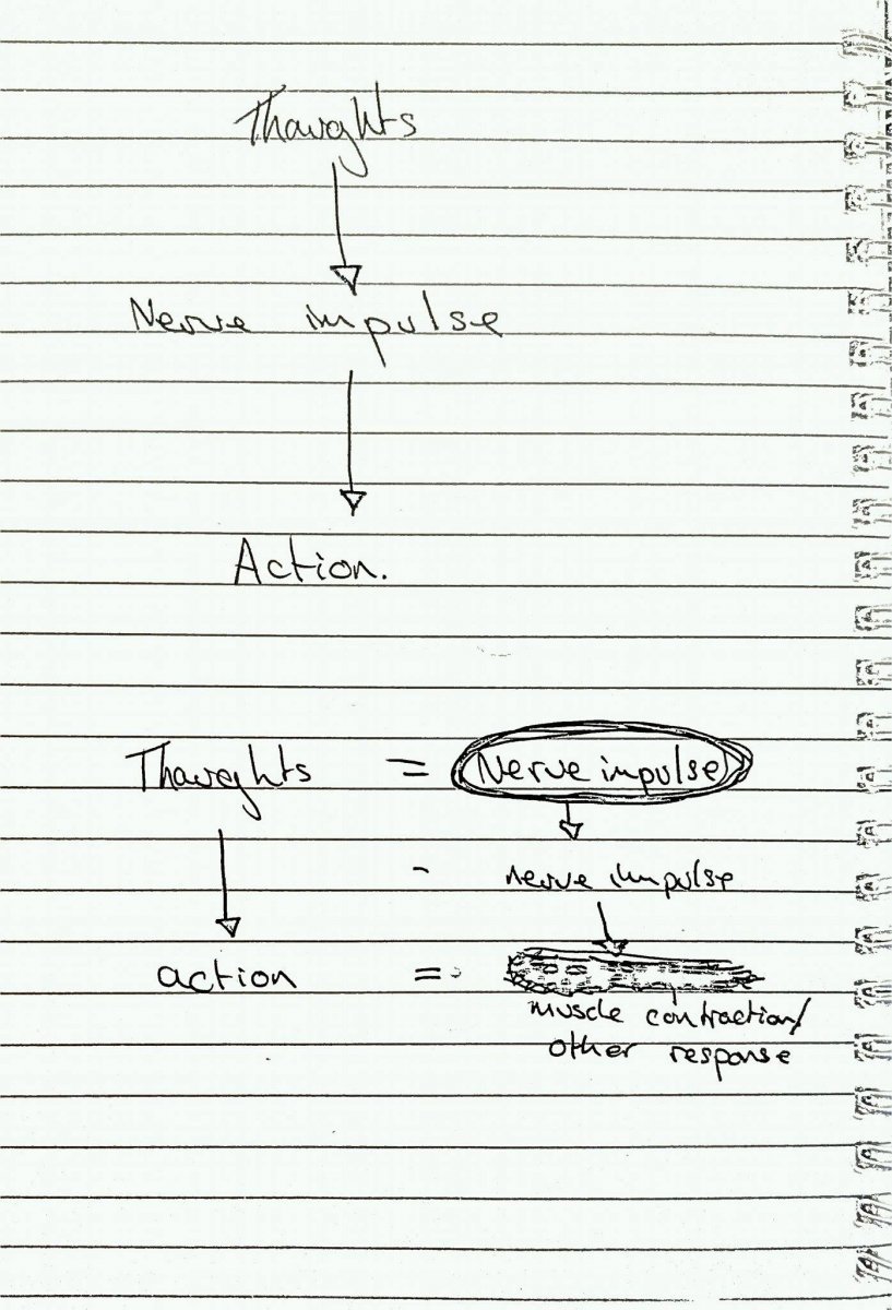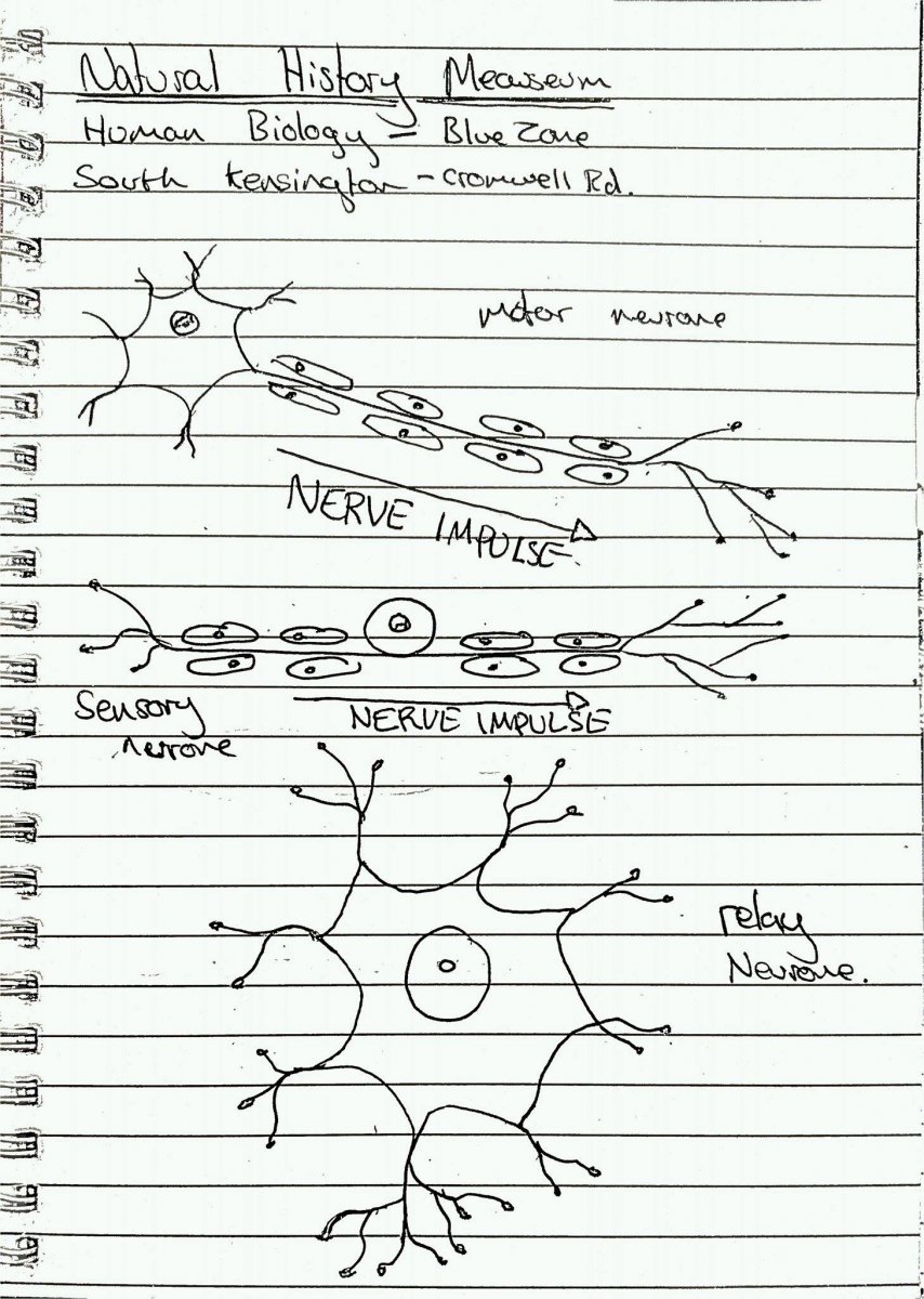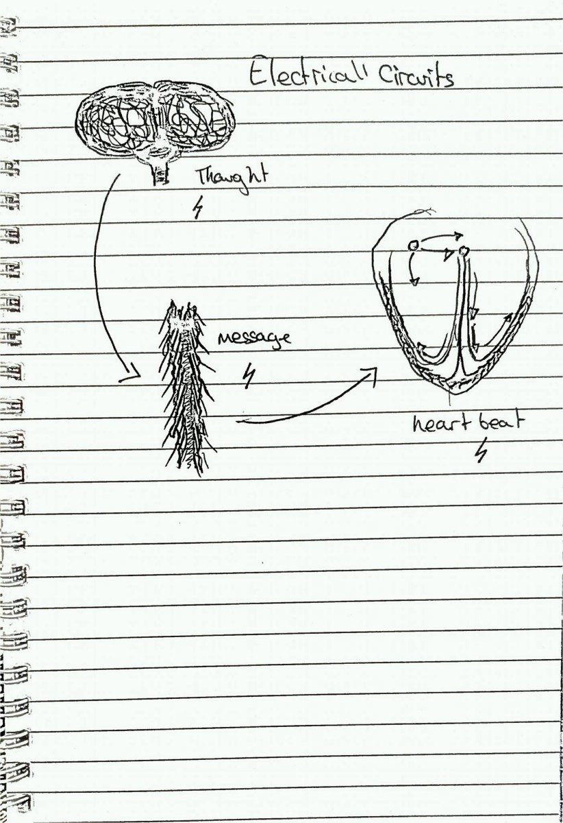 While at the exhibition I wrote some notes and did some sketches in the form of a flow chart to help me understand the way in which the nervous system and the thought process works together. I wanted to understand further how a thought is a physical thing. In the process I began to realise that we are entirely run off electricity. I made the link that the process of a thought -> impulse -> action is a whole string of electrical circuits. By taking the information given to me in this exhibition and producing it in a concise note from made it clear and easy to see. It is a link that I feel particularly good about as it means that the vision for my project can open up and show not just the brain but other aspects of the body as well. Although this theory brings my idea in a very satisfying circle linking back to the beginning of the thought process, I dislike the fact that although true I feel like it is a very tenuous link to make and that I am stretching biological fact to fulfil my aim which is not what I was trying to achieve in this project. I am trying to meet accurate biological standards so to do this I must use true, not interpreted, information. This has caused the development of my idea by using this idea of multiple circuits but only with the heart muscle ( which uses electrical impulses to stimulate a heart beat) in comparison to stryated muscle which only receives electrical impulses as a signal. This means that I can use the information from this exhibition accurately while also adding my own thoughts to the process.